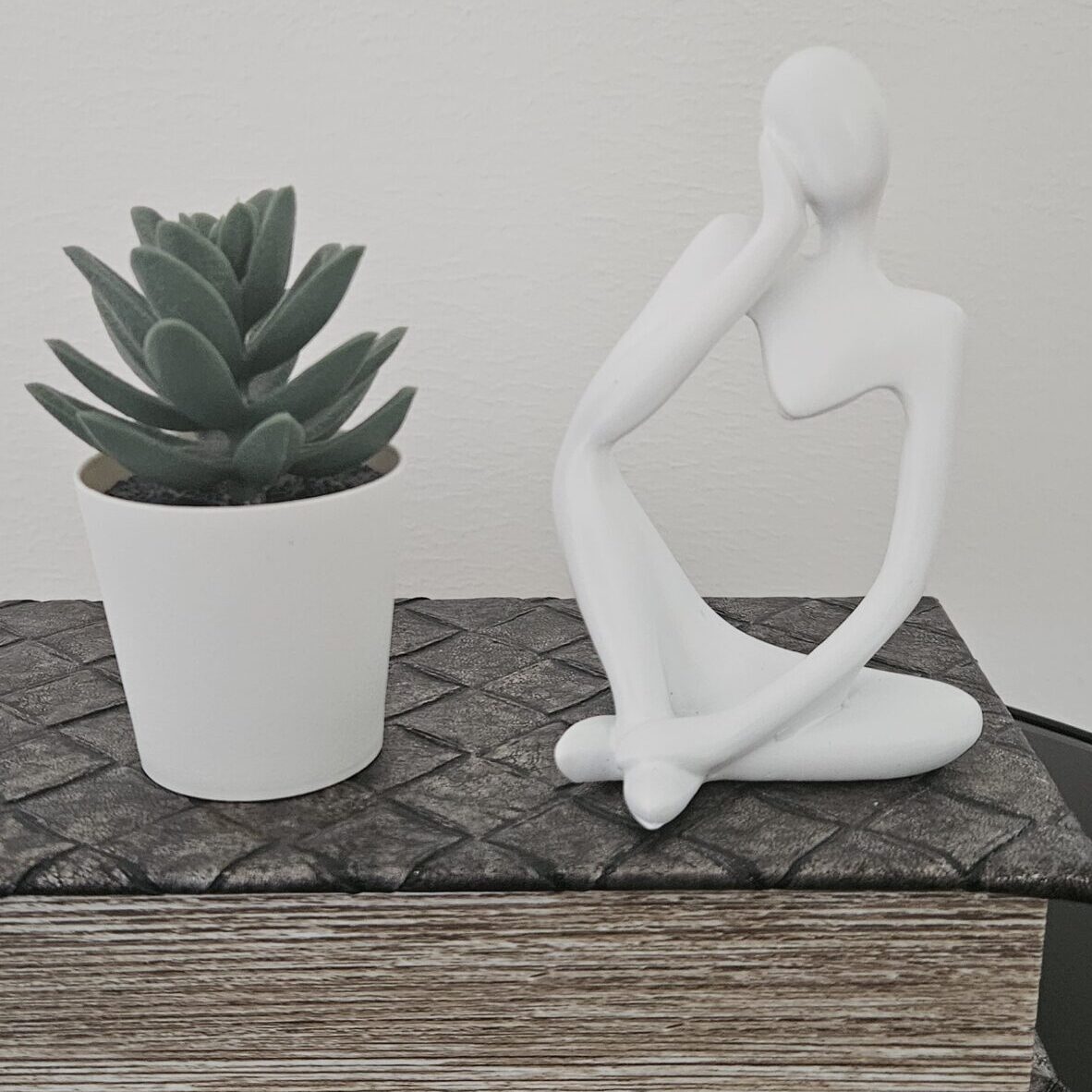 Denna dekorativa figur är en elegant inredningsdetalj som ger rummet ett modernt och sofistikerat uttryck. Med sin stilrena form passar figuren lika bra i vardagsrum som i sovrum, hall eller på kontoret.