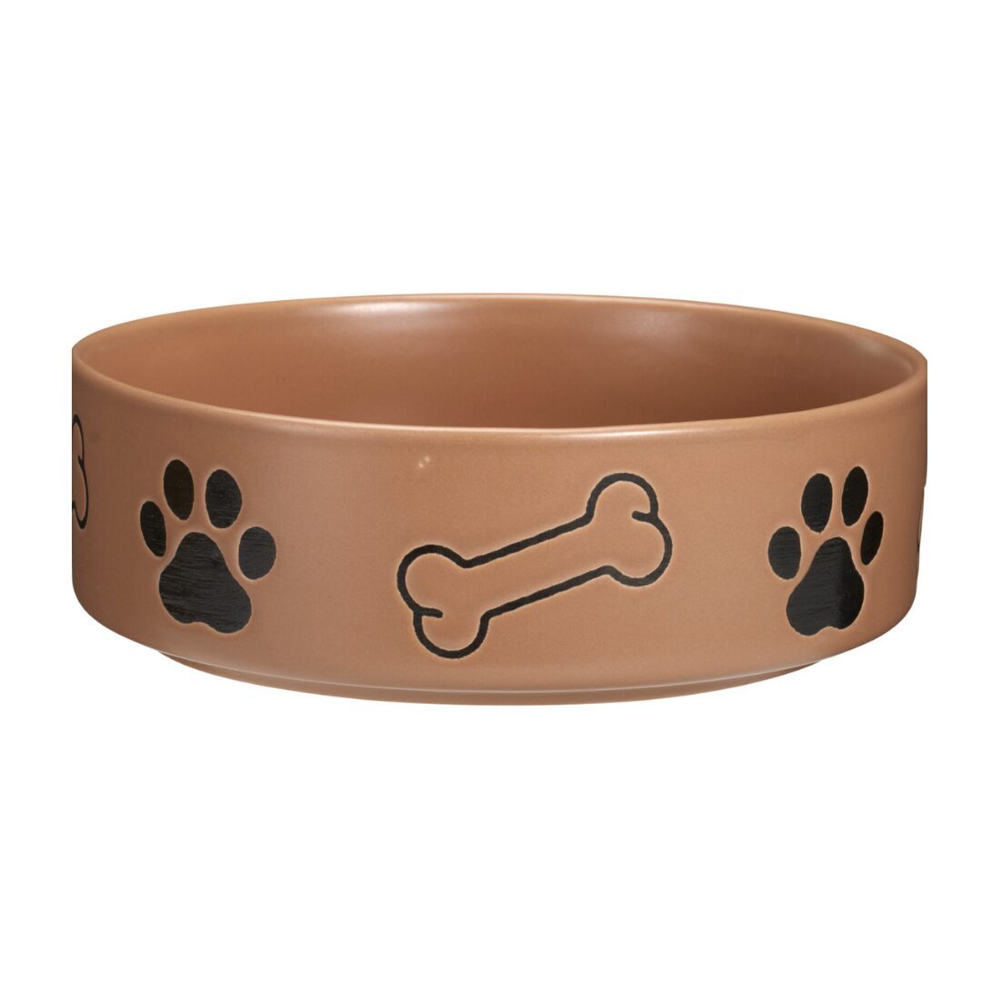Ge din hund en praktisk och snygg matskål i slitstark keramik. Denna hundskål på ca 350 ml har en klassisk form och ett lekfullt tass- och benmotiv som passar i de flesta hem, oavsett inredningsstil.